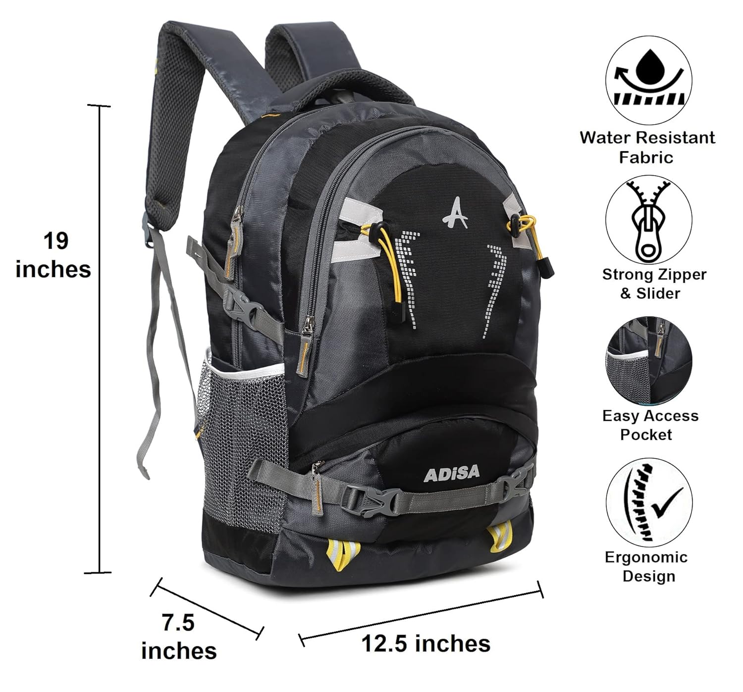 Laptop compartment for work or study.Ergonomic straps & back support for comfort.Water resistance for protection during travel or commutes.Organization pockets for gadgets, chargers, and accessories.Expandable capacity for flexible storage.