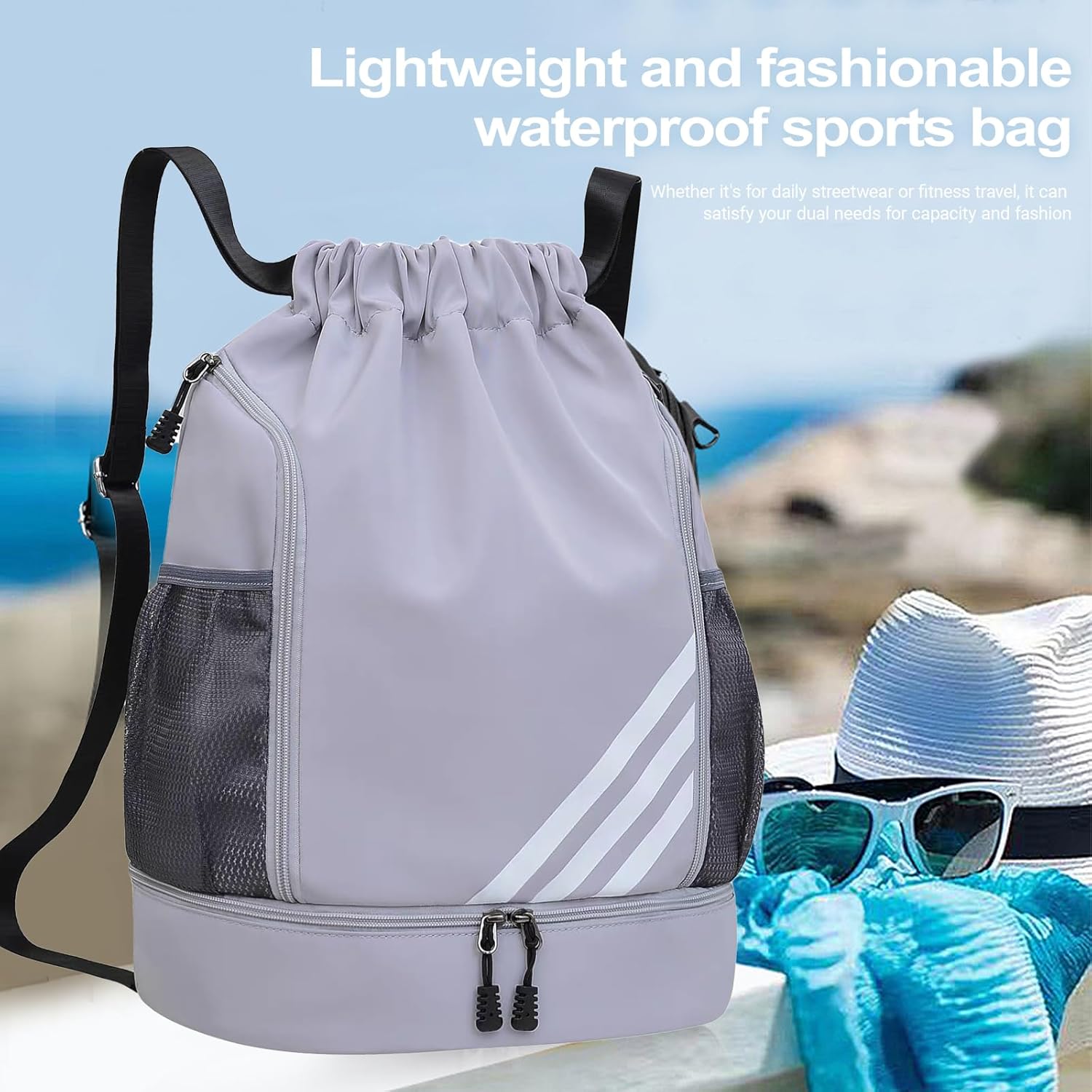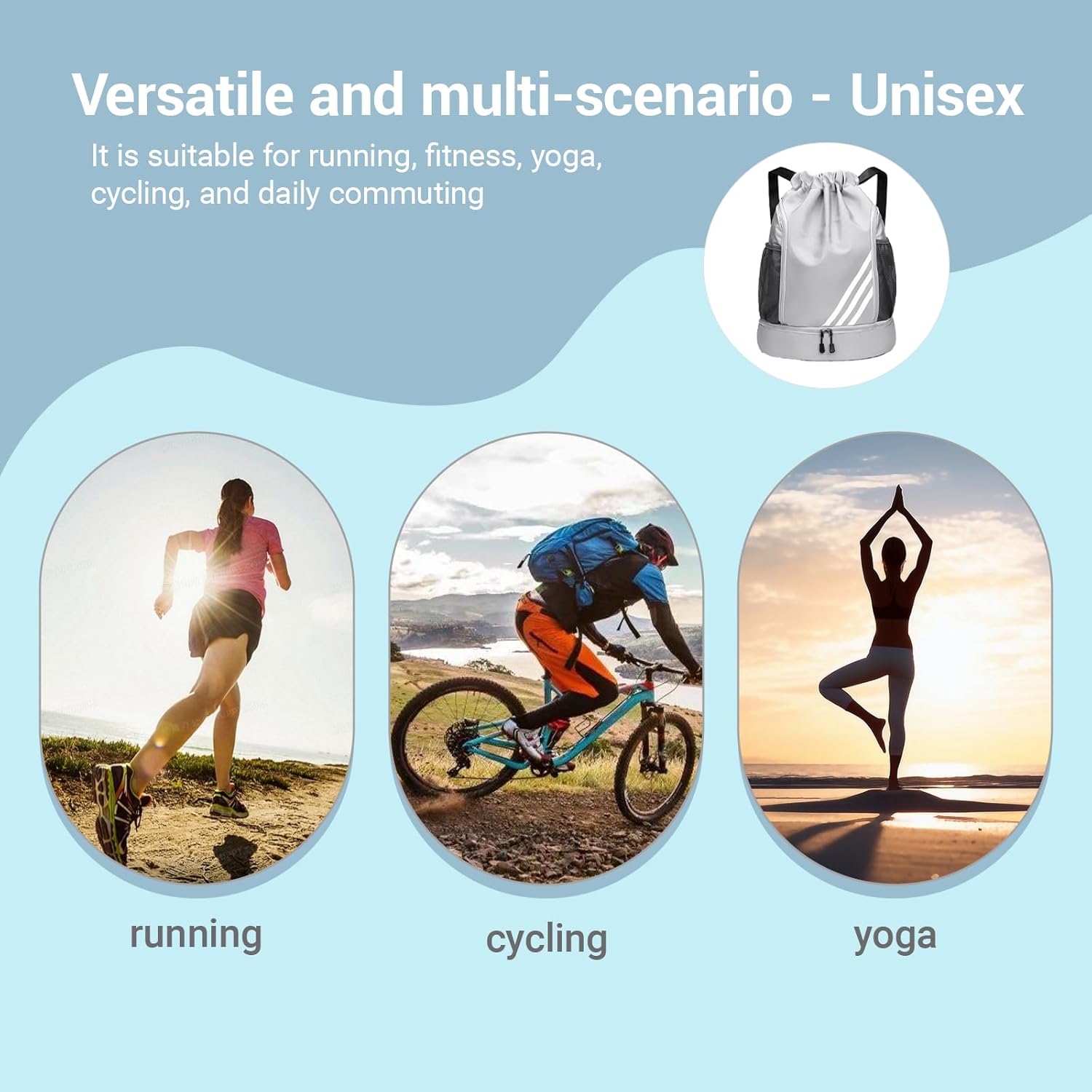 Drawstring Sports Backpack – Multi-Functional Gym & Travel Bag for Active Lifestyles 1. Stylish & Practical Design for Sports & Daily Use This gray drawstring backpack features a sleek, sporty look with white accent stripes and durable mesh side pockets. The drawstring closure allows for easy access, while the structured shape keeps your gear organized—perfect for gym sessions, sports practices, or casual outings. 2. Spacious & Organized Storage Main Compartment: Roomy enough for gym clothes, towels, or daily essentials. Bottom Shoe Compartment: Separates footwear from other items, keeping your bag clean and odor-free. Mesh Side Pockets: Hold water bottles, umbrellas, or small accessories for quick access. 3. Durable Material for Long-Lasting Use Made from high-quality, water-resistant fabric, this backpack withstands daily wear and tear. The reinforced stitching and sturdy straps ensure it holds up to heavy loads, making it reliable for active lifestyles. 4. Comfortable & Versatile Carry Adjustable shoulder straps provide a custom, comfortable fit, whether you’re wearing it as a backpack or carrying it by the drawstrings. Its lightweight design makes it easy to take anywhere—from the gym to travel adventures. 5. Ideal for Athletes & On-The-Go Individuals This multi-functional bag is a must-have for basketball players, gym-goers, travelers, or anyone needing a compact yet spacious storage solution. It combines style, functionality, and durability, making it a versatile addition to your daily routine.