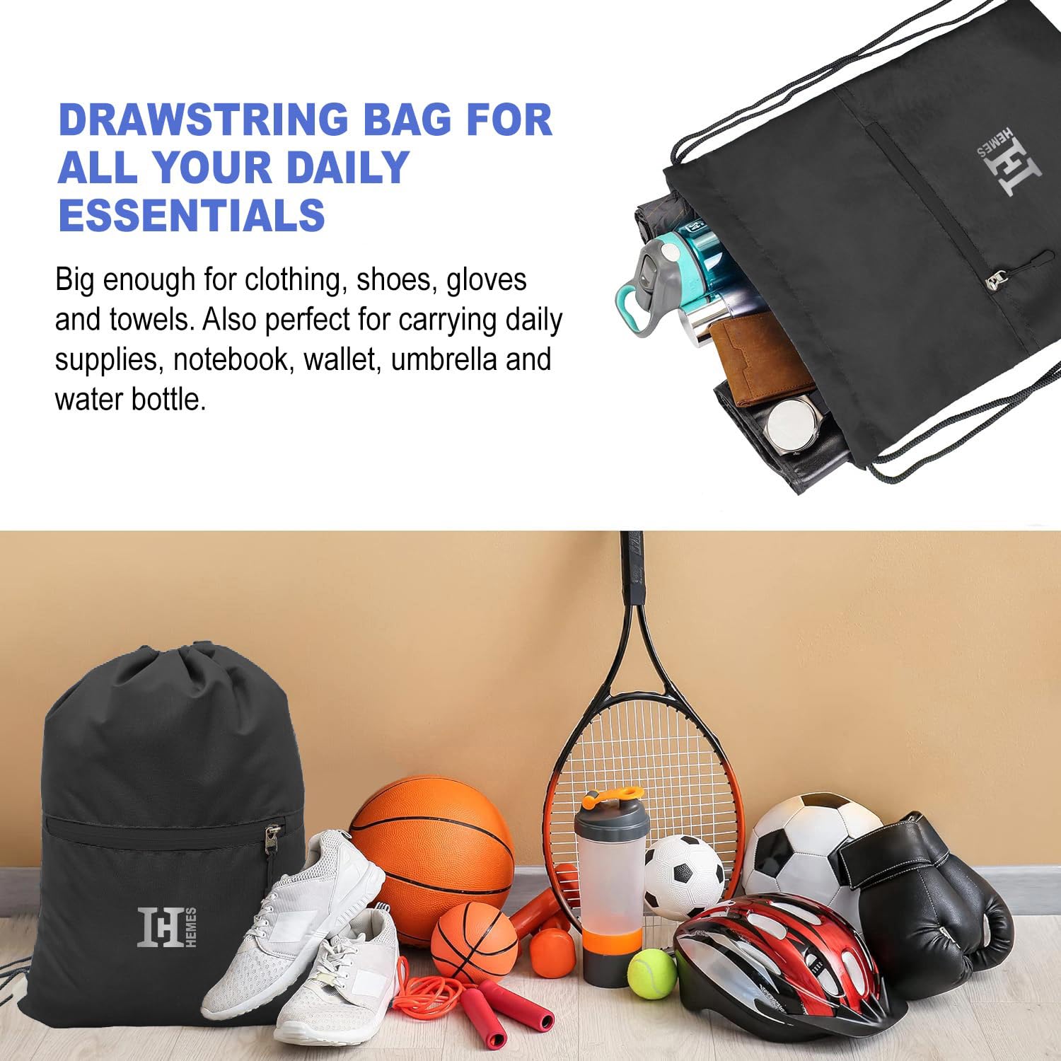 Elevate your everyday carry with the H-Hemes Drawstring Backpack. This compact yet stylish bag is designed for the modern, on-the-go individual. Perfect for gym sessions, quick getaways, or casual outings, its durable construction ensures longevity, while the front zipper pocket adds convenience for your essentials. With a versatile 12L capacity, adjustable straps for a comfortable fit, and a sleek design suitable for both men and women, the H-Hemes Drawstring Backpack is the package of style and functionality. Upgrade your daily routine—order yours now.