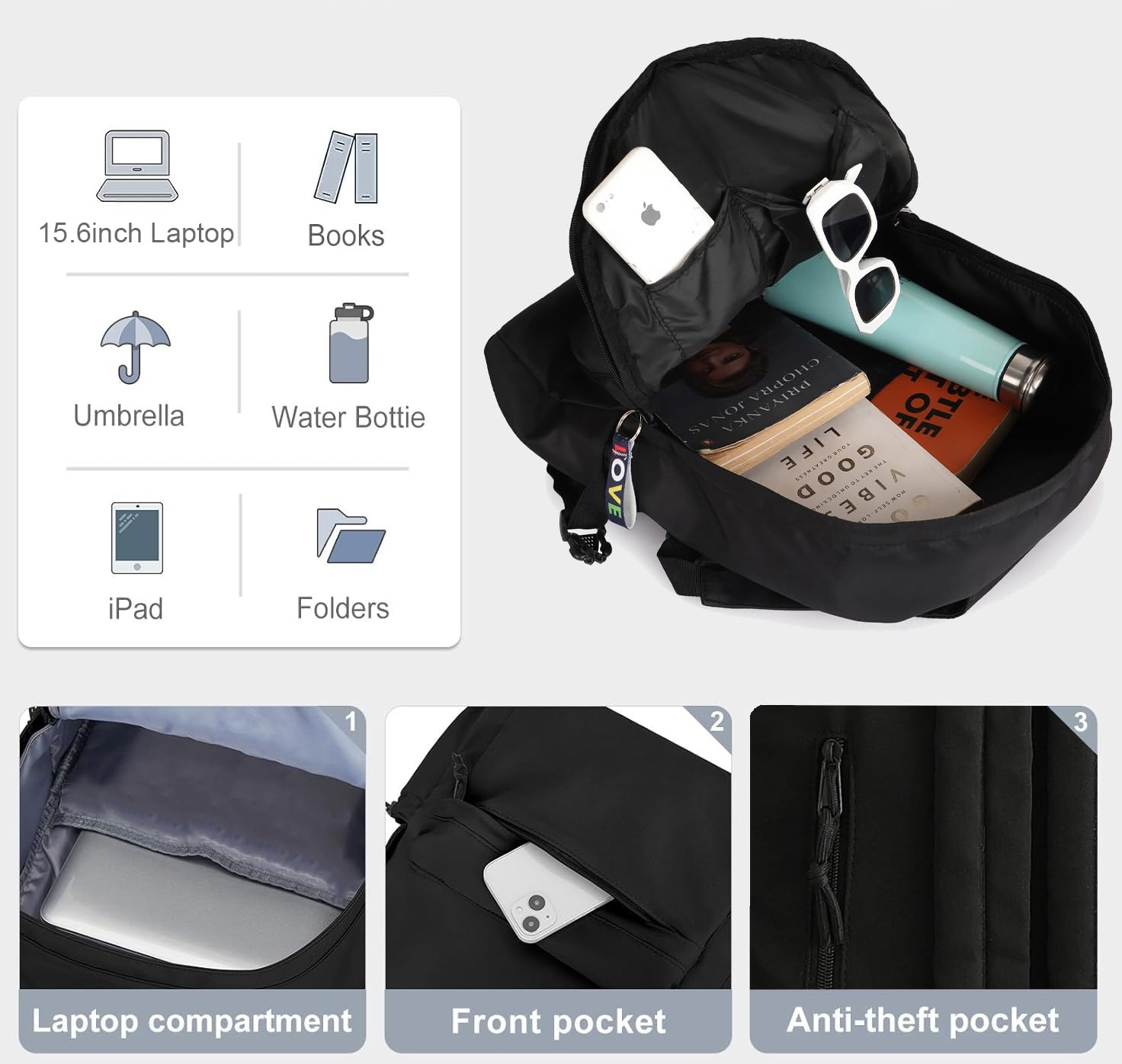 Minimalist Design: Sleek, modern black look suitable for school, work, or travel.