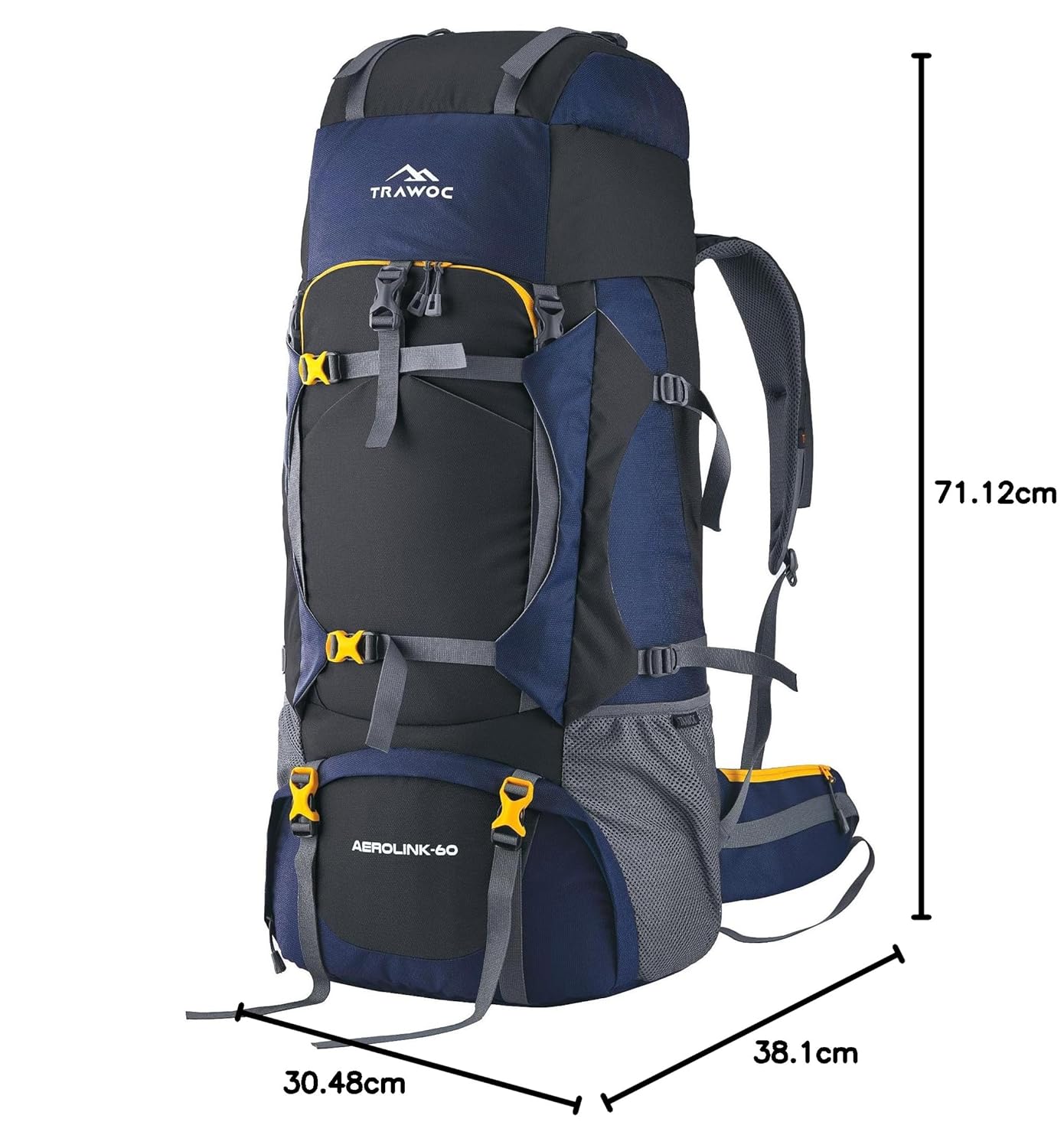 Large, Spacious & Multi-Utility: A perfect travel backpack for your upcoming trips to domestic or international destinations, this 60-liter bag offers ample space for all your essentials. It includes a padded laptop sleeve that fits laptops up to 16.5 inches, multiple straps, buckles, and pockets to organize and secure your belongings. Whether you’re camping or hiking, this rucksack will meet all your adventure needs.